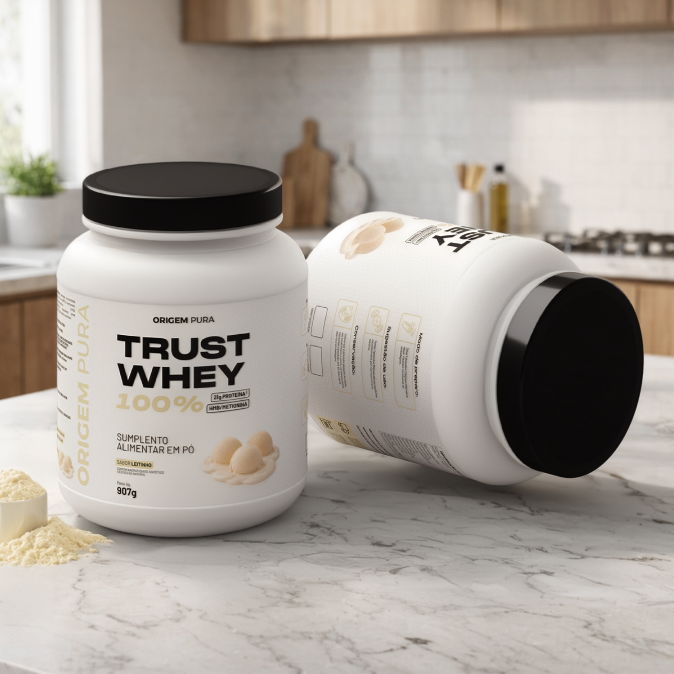 Sua composição traz proteína concentrada do soro do leite (WPC), associada a L metionina e HMB, em uma formulação que reforça o posicionamento da linha Trust Whey 100% como uma proteína para o dia a dia. O sabor Leitinho tende a conversar bem com quem procura uma experiência mais suave de consumo, sem perder o foco na entrega funcional do produto.